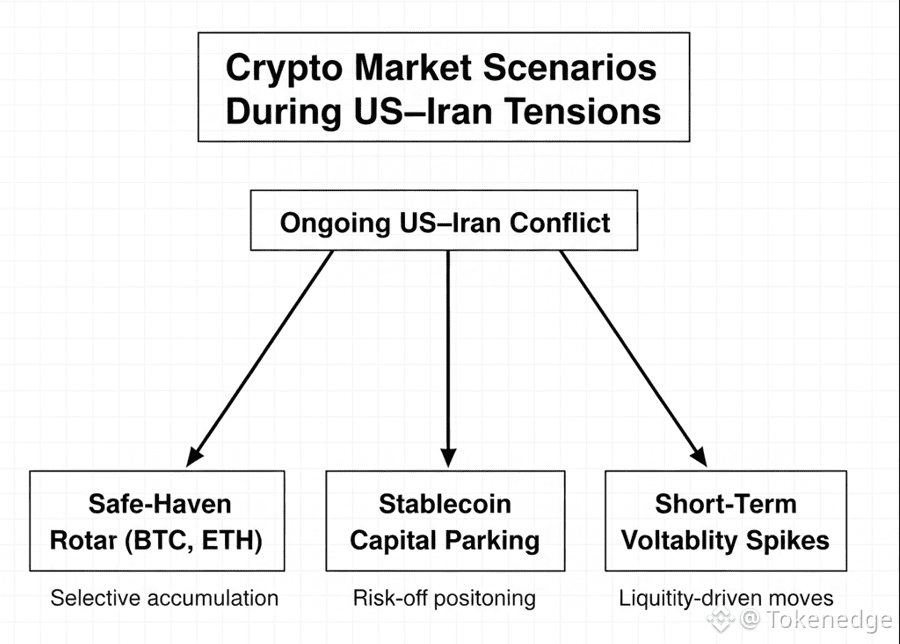 What nobody discusses is how crypto reacts differently from traditional markets during such conflicts. It’s not just a safe-haven play—flows and positioning tell a more nuanced story.