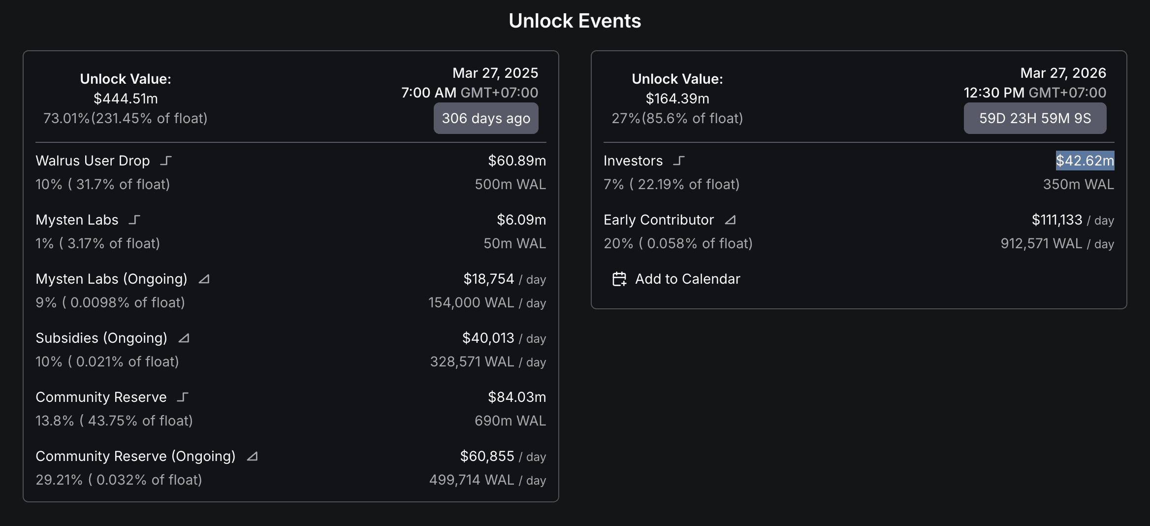 🔥 Tiềm năng tăng giá mạnh: Nếu Sui tiếp tục phát triển mạnh mẽ (như Grayscale launch trusts liên kết Sui protocols năm 2025), Walrus sẽ hưởng lợi từ adoption thực tế, đẩy TVL và usage lên cao. Tuy nhiên, việc unlock cực lớn sắp đến vào 27/3 (350M WAL - ~$42.62m USD) có thể gây dip giá mạnh trong ngắn hạn – cơ hội buy cho holders có niềm tin dài hạn!