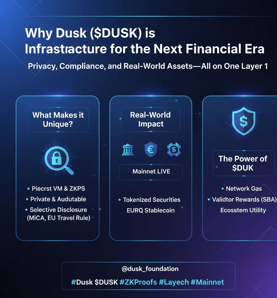 По мере нашего продвижения в 2026 году обсуждение блокчейна постепенно перешло от "шумихи" к "полезности." Фонд @dusk_foundation находится в самом центре этих событий. В отличие от большинства сетей блокчейна первого уровня, dusk специально адаптирован для регулируемого финансирования.