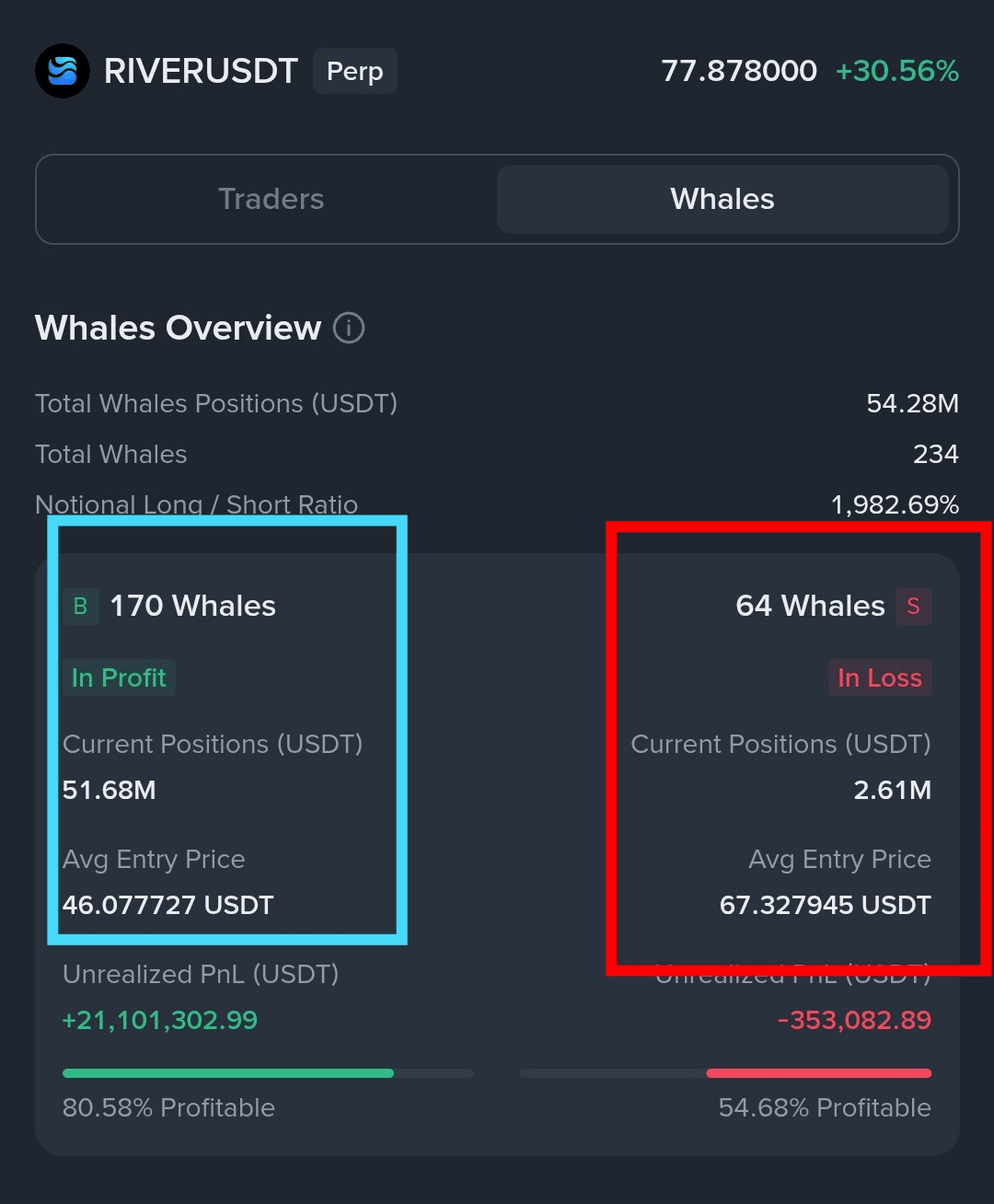 $RIVER За последние 40 дней он вырос с $2 до $80. Причина в чрезмерных ликвидациях шортов и сильном интересе людей к покупке длинных позиций.