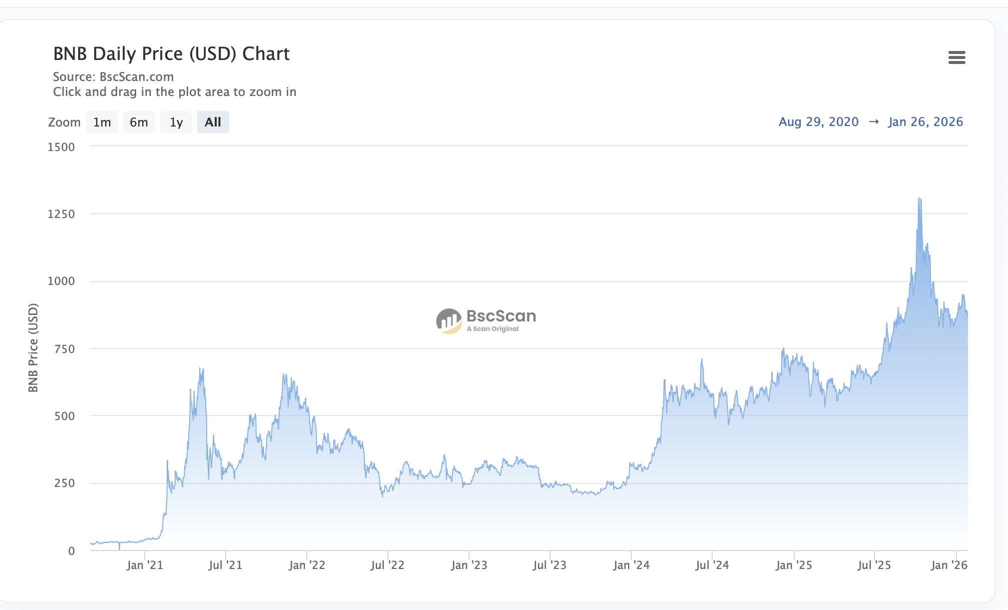 Для меня этот график ясно показывает одну вещь: BNB больше не является активом на ранней стадии, но он также не завершен. Долгосрочная структура остается бычьей, пока цена продолжает уважать более высокие диапазоны и избегает потери ключевых исторических уровней поддержки. Краткосрочная волатильность нормальна, но более широкая картина все еще благоприятствует продолжению, а не коллапсу.
