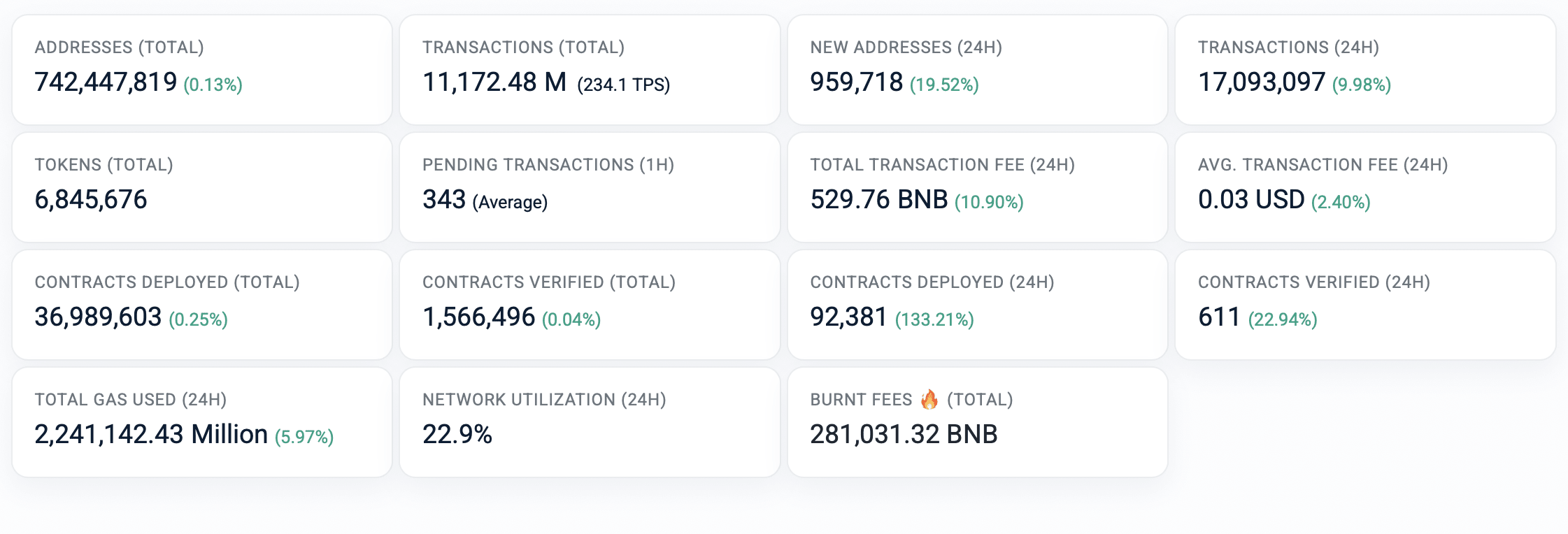 Когда вы смотрите на эти числа вместе, становится ясно, что BNB Chain не замедляется, а тихо расширяется. Общее количество адресов теперь превышает 742M, и хотя темпы роста выглядят небольшими, это нормально на таком уровне. Более важно то, что за 24 часа появилось 959K новых адресов, резкий скачок, который сигнализирует о свежем притоке пользователей, а не о переработанной активности.