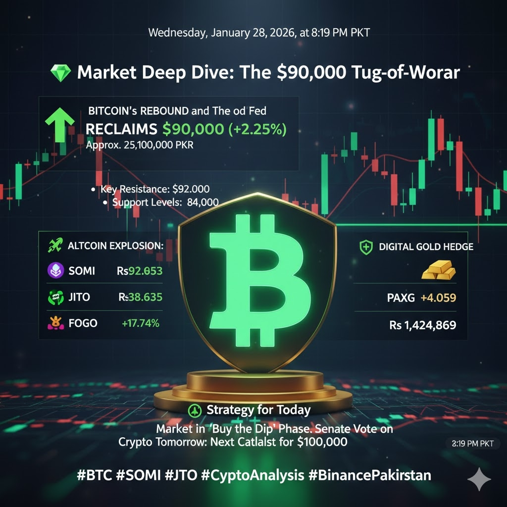 Цена Биткойна($BTC ) прыгнула в это среду, вернувшись к $90,000 (примерно 25,100,000 PKR), поскольку трейдеры ожидают первого решения ФРС по ставкам в этом году. Этот шаг следует за резким восстановлением от минимальных значений выходных в $86,000. В Пакистане местный обменный курс стабилизировался, укрепляя роль Биткойна как важного хеджа против валютного давления.