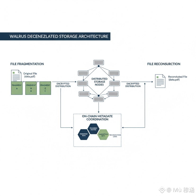 The article frames Walrus as a storage layer built with Sui’s execution model in mind, rather than a generic decentralized file system. The core design choice is to treat data availability as an engineering constraint rather than a purely economic problem. Files are broken into segments and further into smaller fragments, with additional encoded fragments generated to create redundancy. This allows reconstruction of data even if several storage providers become unavailable, reducing dependence on any single operator.