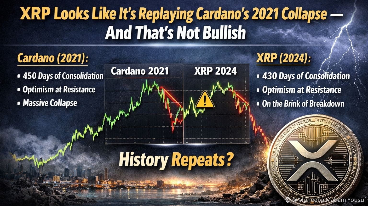 С технической точки зрения структура XRP отражает установку Cardano перед его крахом в 2021 году — и сходства вызывают дискомфорт.