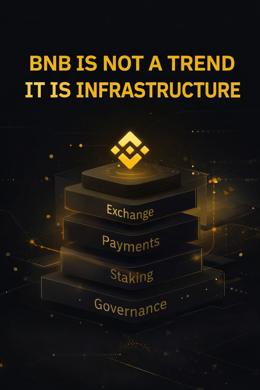 BNB является одним из самых обсуждаемых токенов в криптовалюте, но также одним из самых непонимаемых. Люди видят его на графиках, слышат об уничтожениях или связывают его с Binance, но редко останавливаются, чтобы задать более глубокий вопрос. Какова на самом деле роль BNB в системе, которую он поддерживает? Не как спекулятивный актив, а как часть инфраструктуры, которая пережила несколько рыночных циклов, регулирующее давление, изменения нарратива и расширение продуктов.