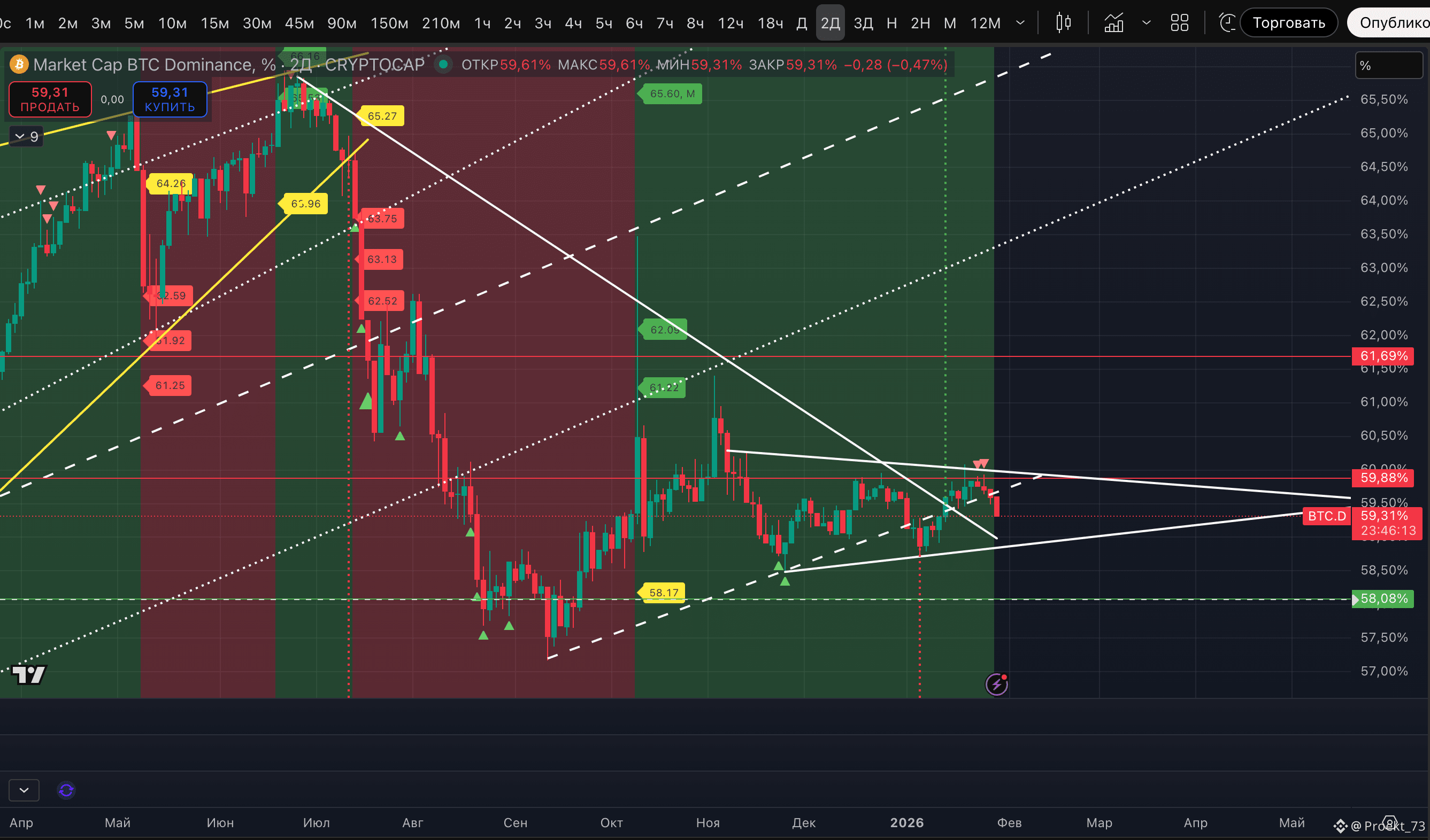 Ну и рост выше 59,88%, в условиях текущего рынка, - это для перспектив альткоина жесткое табу.