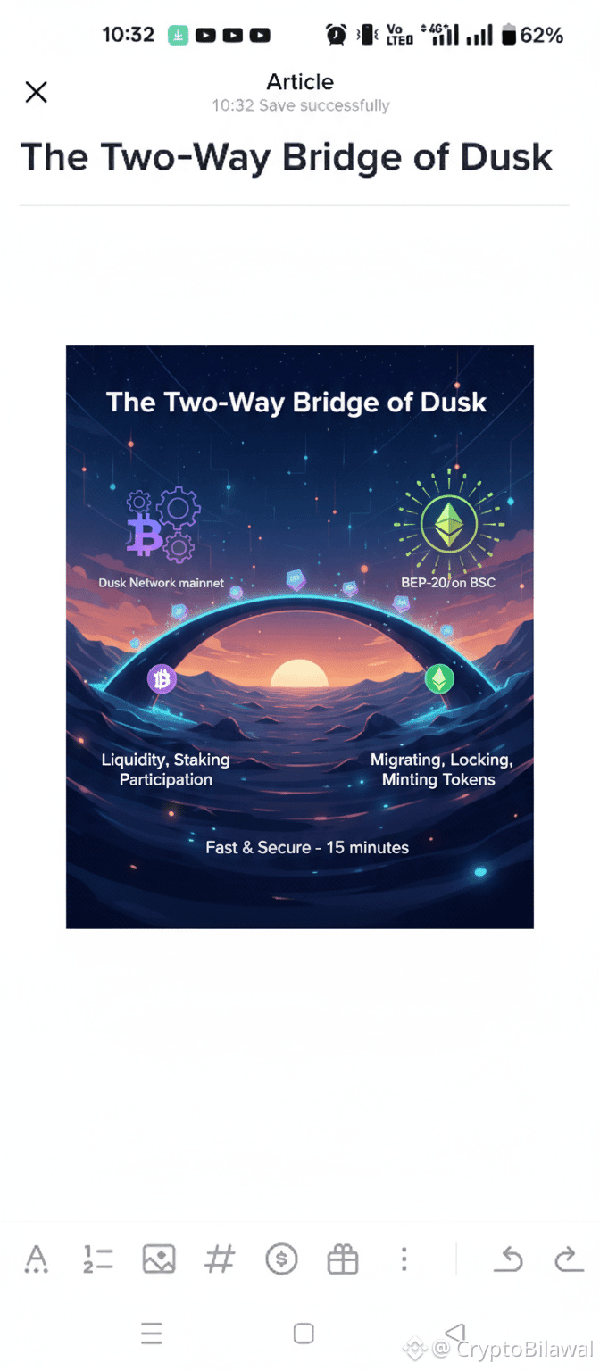 This is possible because BEP20 DUSK on BSC is treated as a wrapped asset; the minting on BSC is only allowed after proof of a lock on the mainnet side. This makes native DUSK on Dusk mainnet the source of truth, strengthening our position as the most secure issuance layer for DUSK.#DUSK $DUSK @Dusk