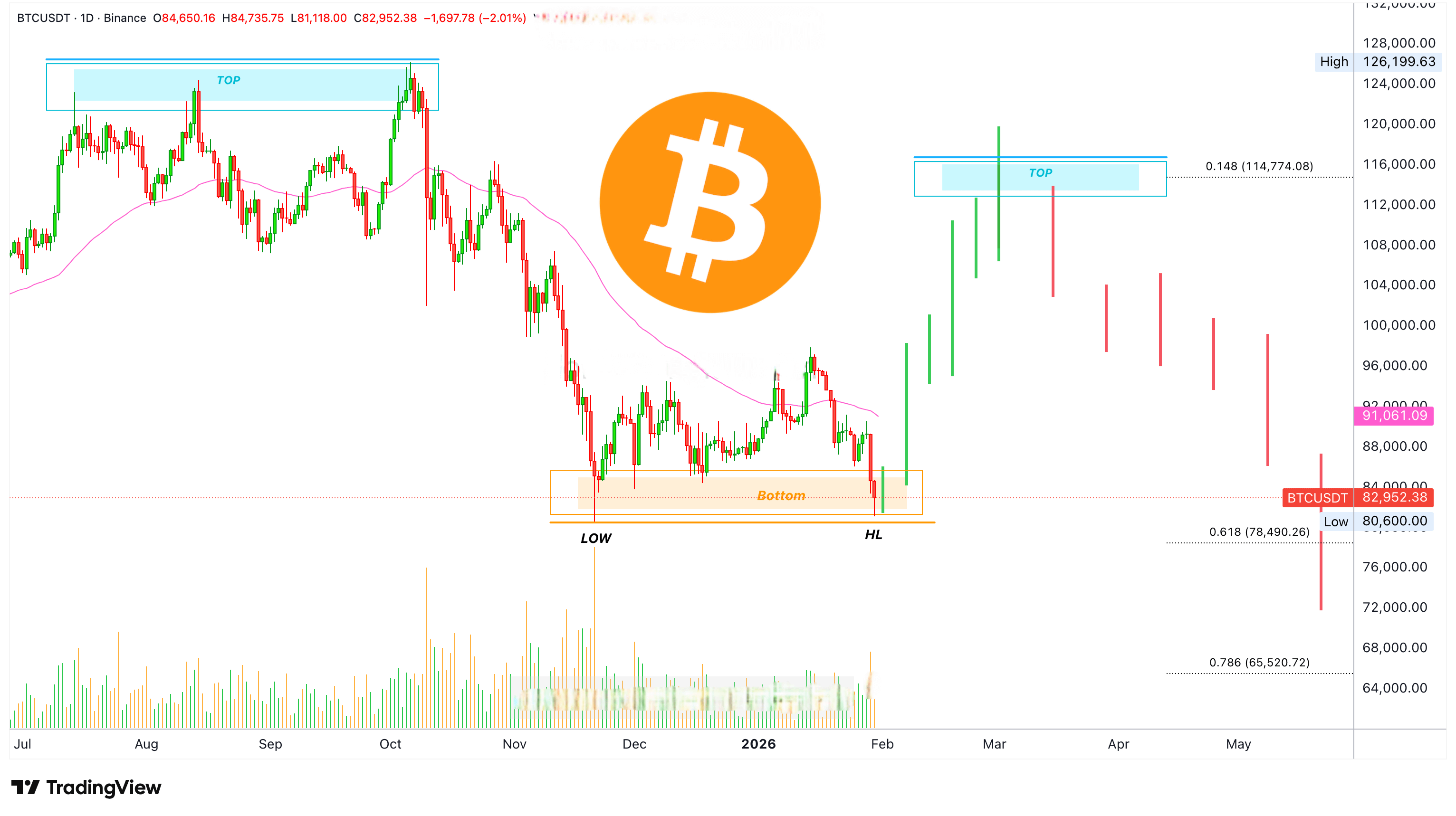 Правда в том, что биткойн ожидается ниже в последней части 2026 года, но это все еще далеко. Продолжение медвежьего цикла - это процесс, который должен начаться в марте или после марта 2026 года, что означает, что у нас все еще есть немного или достаточно времени. Облегчительное ралли все еще продолжается! Биткойн снова растет.