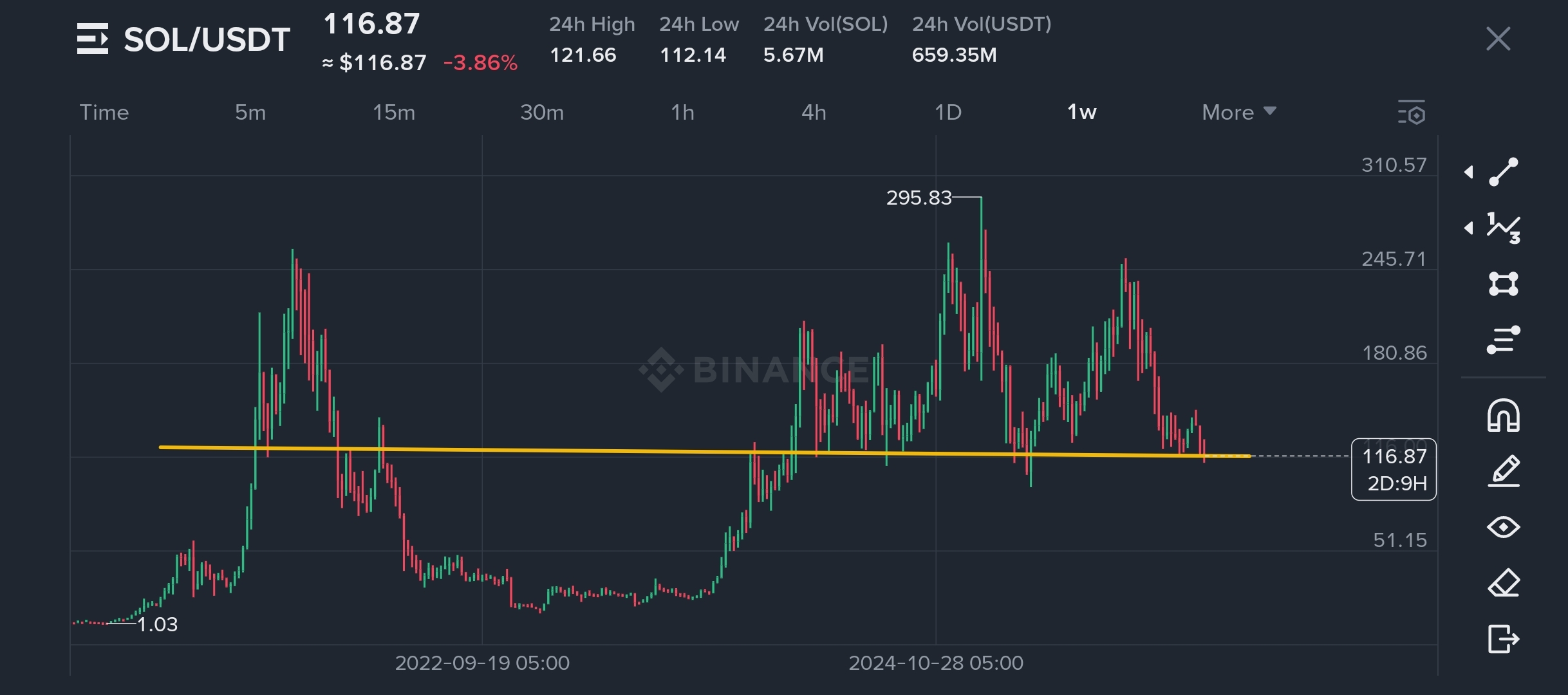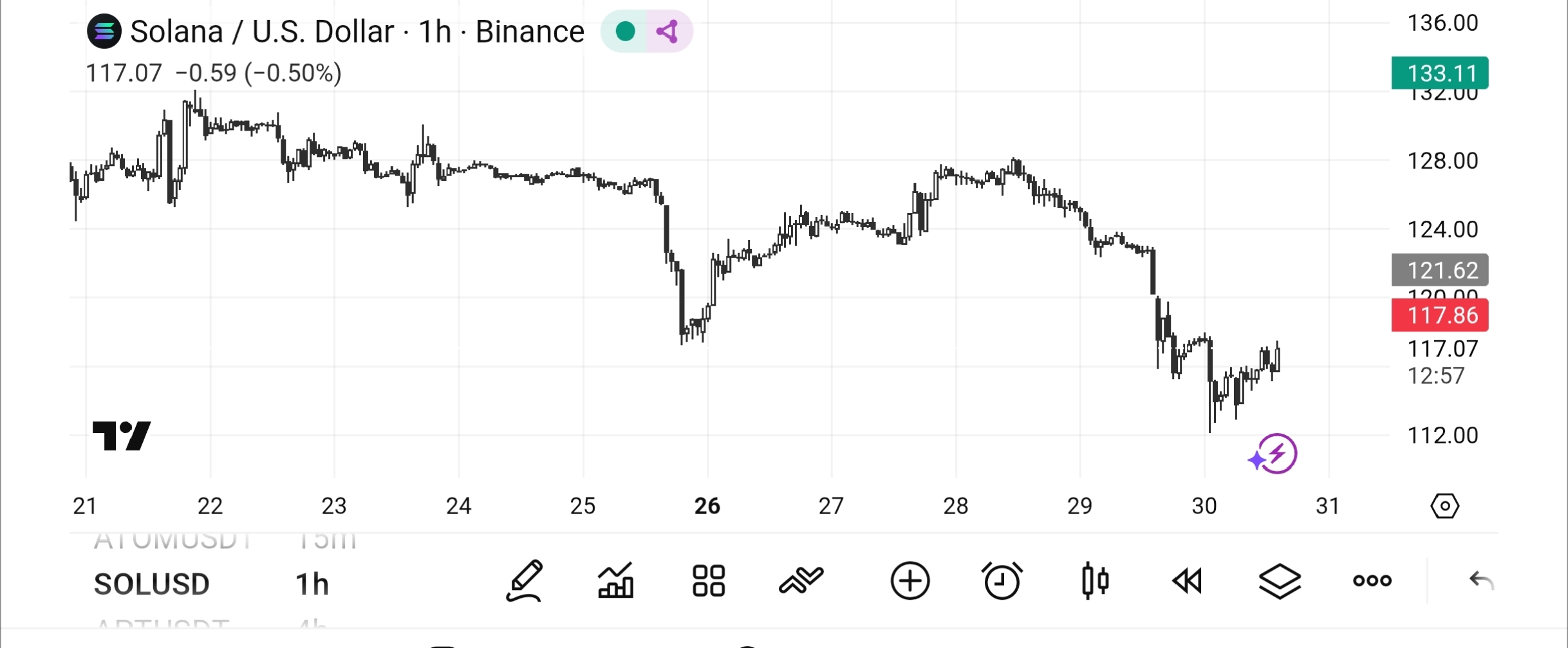 Это помещает $SOL в фазу компрессии — либо поддержка держится, и цена отскакивает, либо пол становится слишком слабым и открывает более глубокие низы.
