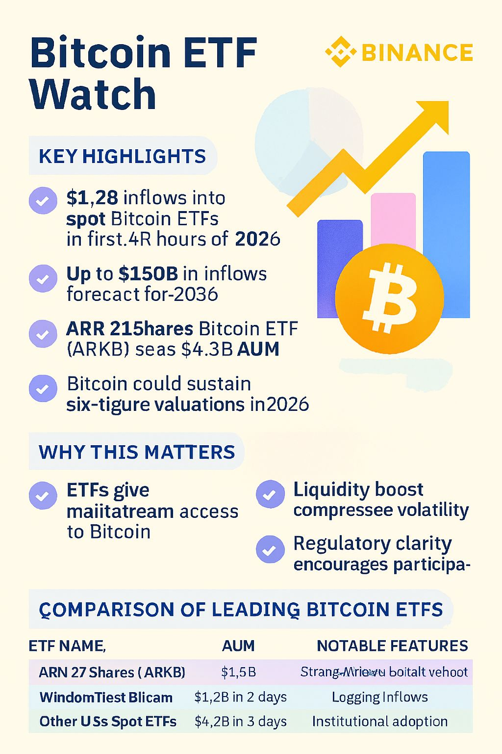 Bitcoin ETFs стремительно входят в 2026 год с рекордными притоками, сигнализируя о значительном институциональном сдвиге. Всего за первые два торговых дня января американские спотовые Bitcoin ETFs привлекли более 1,2 миллиарда долларов, и аналитики прогнозируют, что ежегодные притоки могут достичь 150 миллиардов долларов, если динамика сохранится. Этот рост изменяет инвестиционный нарратив Bitcoin с розничной спекуляции на институциональное принятие.