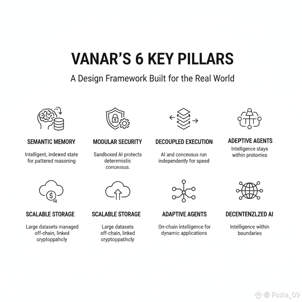 Another thing Vanar gets right:they don’t jam AI directly into the consensus process.If you do that,you slow everything down and open up security holes.Instead,they keep things modular.Consensus stays clean,fast,and deterministic.AI execution and memory? They’re separate,optimized for their own jobs.Storage can scale up on its own,so you can keep big datasets without bogging down the core chain.