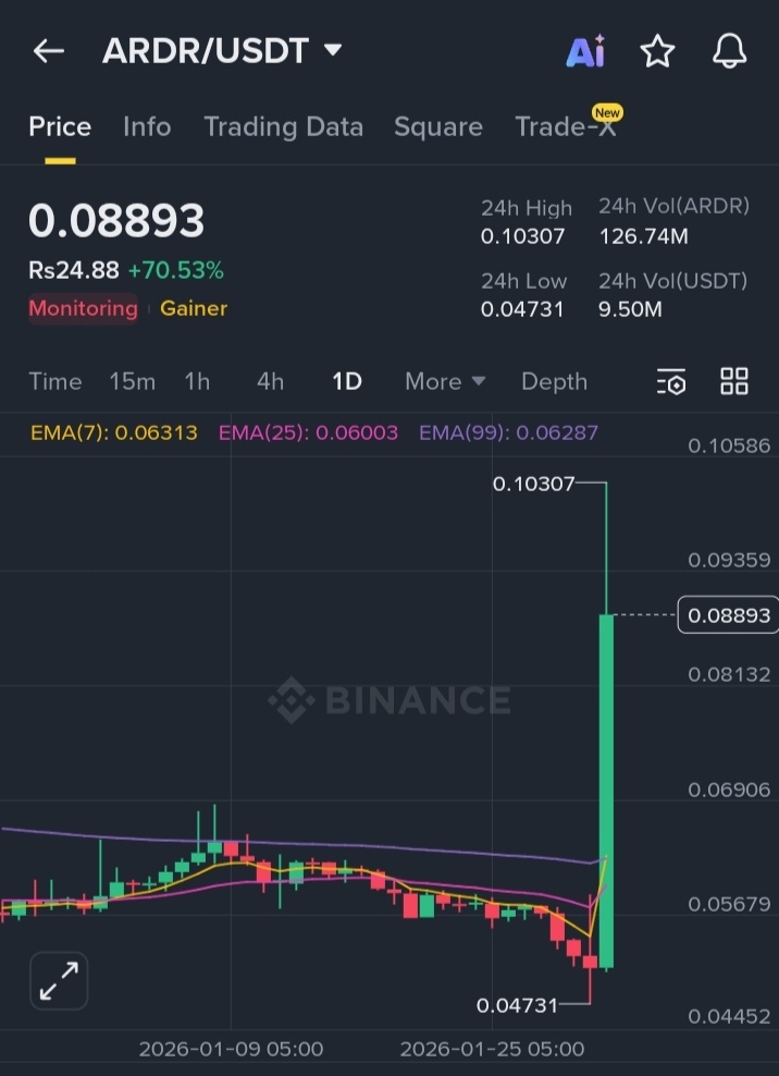 $ARDR сегодня показал огромный прорыв, увеличившись более чем на +70% за одну сессию. Этот ход не был случайным — это была комбинация технической структуры, ликвидного захвата и импульсного зажигания.