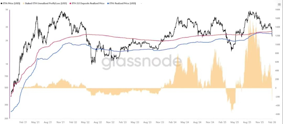 • 不仅是质押者,绝大部分 ETH 持有者都已陷入亏损。