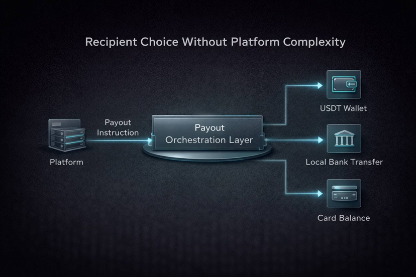 Это можно исправить через рельсы выплат стейблкоинов, которые отделяют логику выплат платформы от предпочтений получателя. Платформа выплачивает один раз; механизм выплат перенаправляет это в формат, желаемый получателем; либо стейблкоин, либо конвертация в местную валюту.