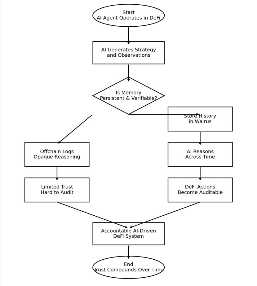 In DeFi, memory is everything. Risk models depend on historical behavior. Lending protocols depend on long-term repayment patterns. Governance depends on past decisions and commitments. When AI is introduced without shared memory, it becomes a black box optimizer. It may be effective in the short term, but it cannot be audited or reliably constrained over time. Walrus gives AI agents a place to anchor their memory where it cannot be silently rewritten.