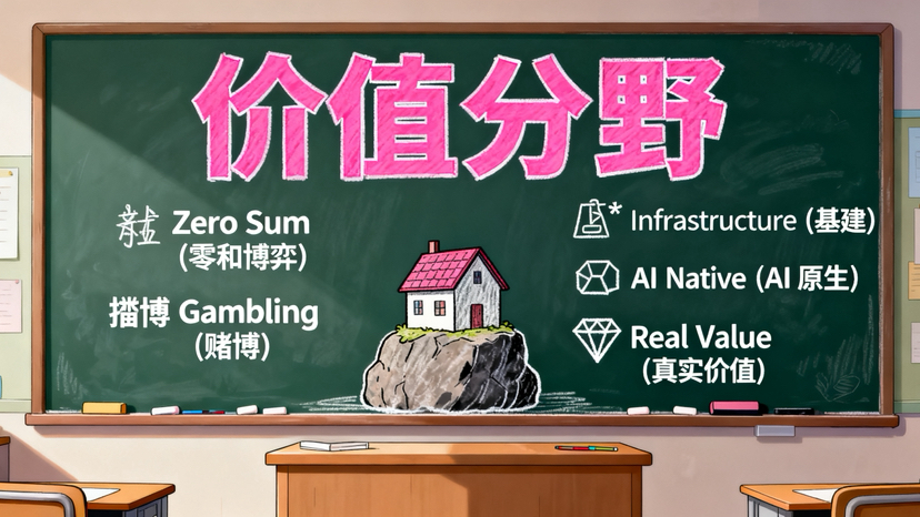 左边是猎杀游戏,建立在脆弱的共识和互搏上,一地鸡毛。右边是“基建工程”,建立在解决痛点和创造效用上,稳扎稳打。