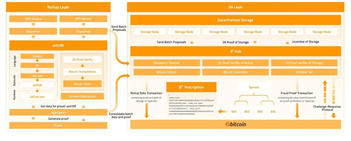 Сеть B² не является исключением. Читая сеть B², мы видим, что проект использует модульную архитектуру блокчейна, которая в основном включает в себя двухуровневую структуру: уровень Rollup и уровень DA, что немного похоже на Celestia.