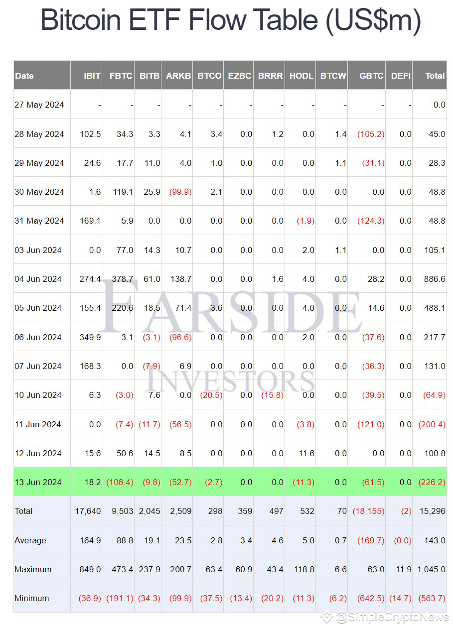 🤑 Вчера чистый отток из биткоин-фондов составил $226 млн