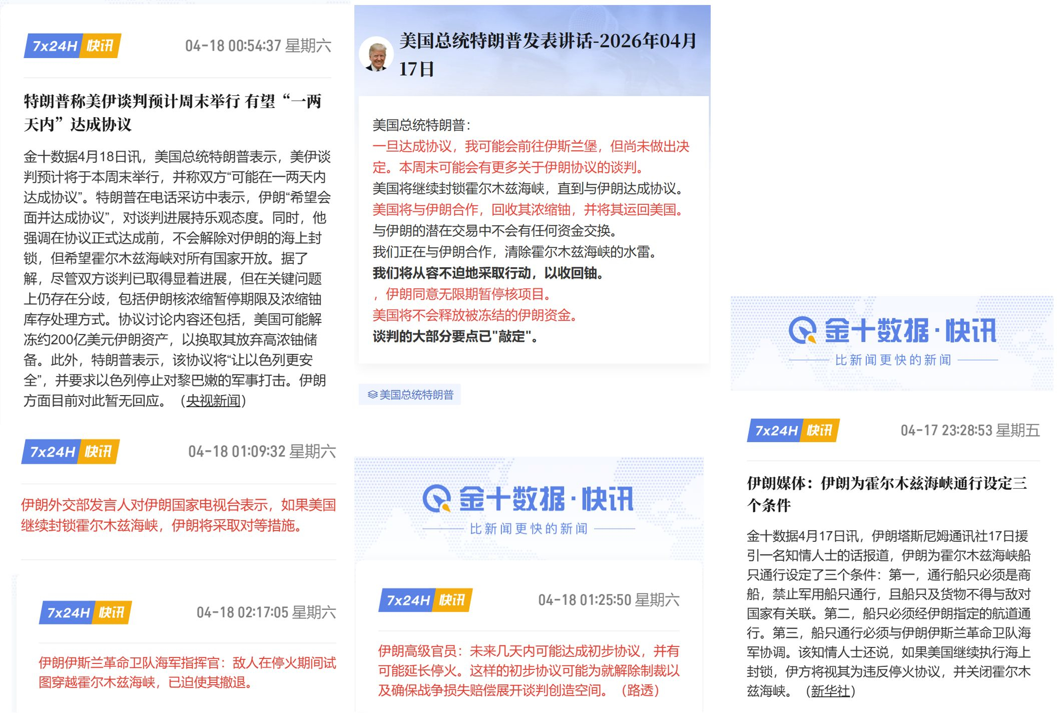 2.先是说"达成协议前,继续封锁海峡",后又说"不会解除对伊朗的海上封锁";
