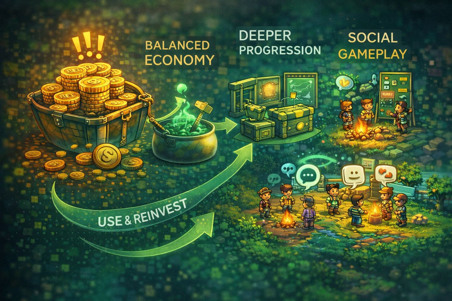 The updated model revolves around strengthening the cycle: craft → earn → upgrade → repeat. Instead of letting resources pile up endlessly, new systems are being introduced to create natural demand.