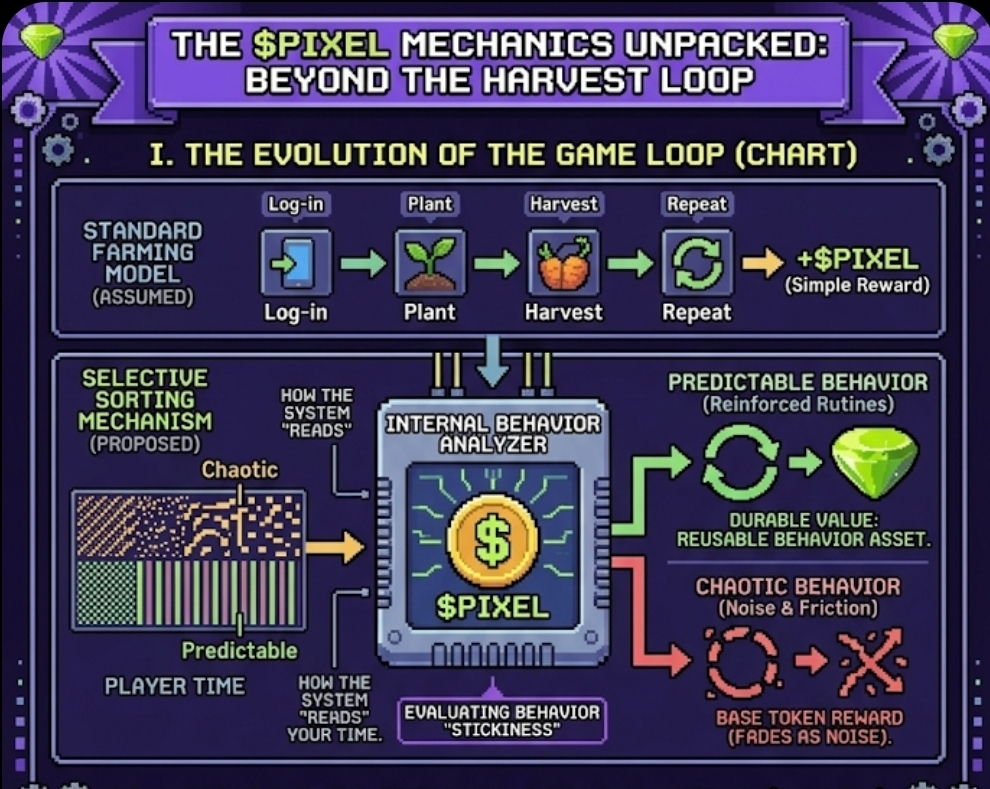 What looks like a simple farming loop might be doing something more selective underneath. Not just rewarding time, but organizing it. Deciding, quietly, which versions of player behavior are worth carrying forward.