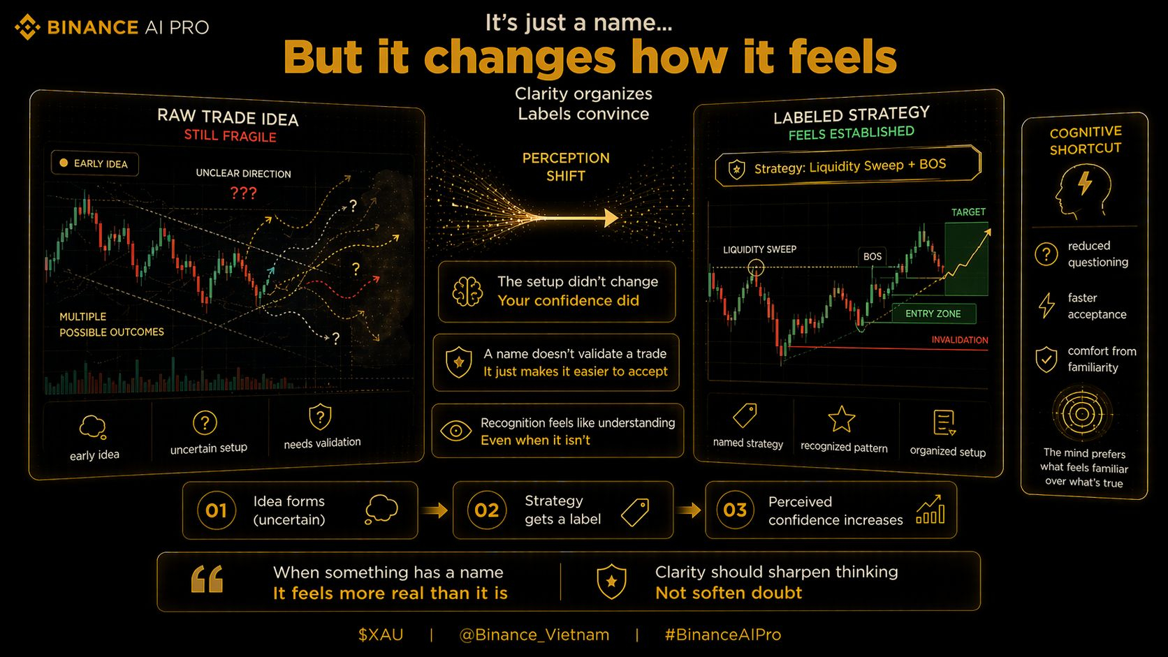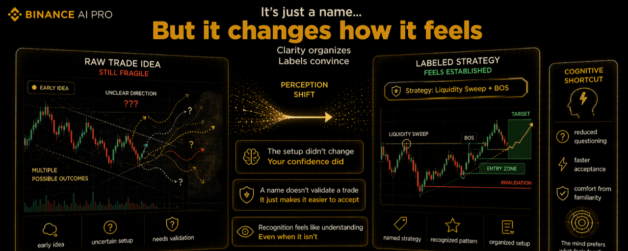 A setup that might still be fragile, still dependent on timing or context, suddenly feels more stable just because it sounds like a “type” of trade. And that’s not the same as actually being stable.