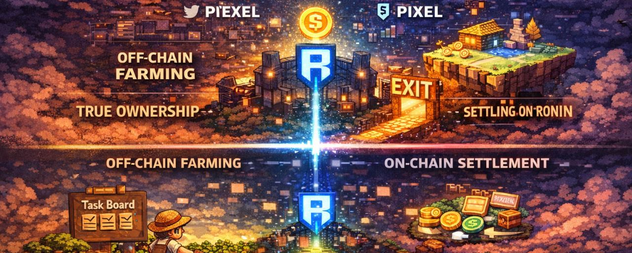 because inside the Pixels farm everything is smooth. off-chain, instant, no friction… you move, craft, complete things, Coins circulate, Tasks surface, pixels appears. it feels like a complete system on its own. but the moment i start thinking about moving that value out toward Ronin, the tone shifts instantly… like i’ve been inside one environment the whole time and suddenly i’m at the edge of it… and that edge isn’t open, it’s controlled.