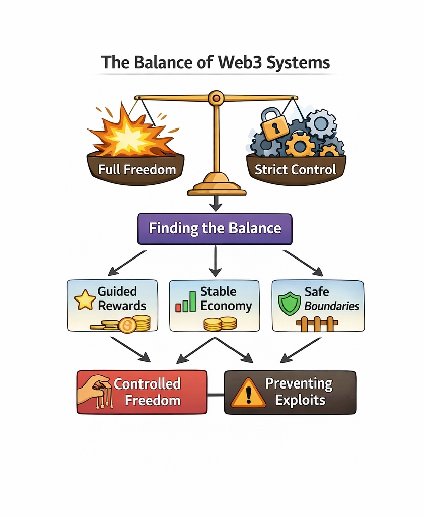 Because full freedom without structure can break a system. If every user acts without limits the economy becomes unstable. Rewards lose meaning. Exploitation starts. And trust fades.