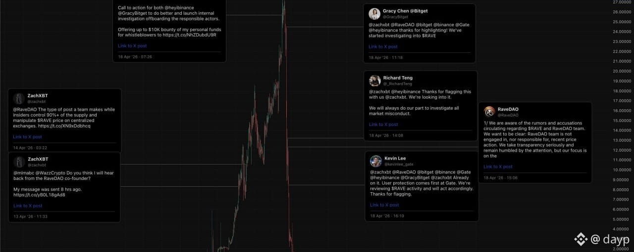 • $RAVE несколько дней занимал до 50% всего объема торгов Bitget, комиссия с этого токена стала основным источником дохода биржи в тот период