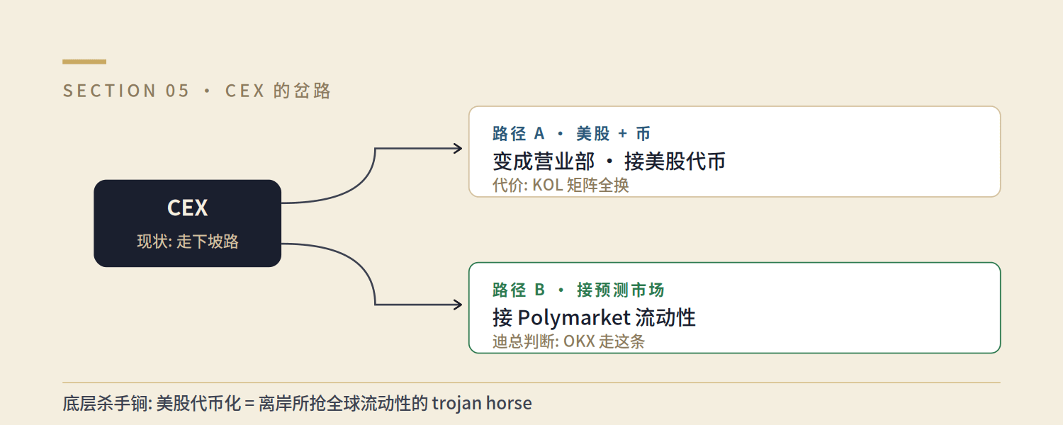 5️⃣ CEX 的两条出路 + 美股代币化的"杀手锏"