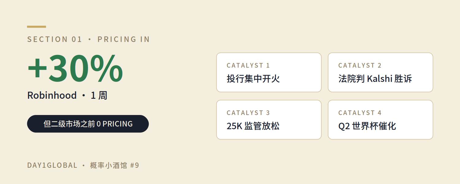 1️⃣ Robinhood 涨 30% 背后:二级市场刚开始 pricing in 预测市场