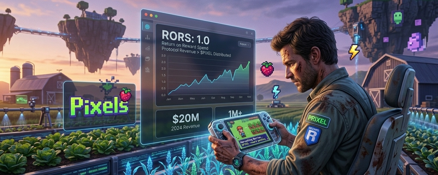 Pixels is attempting to break this cycle by introducing the Return on Reward Spend as its primary economic guardrail. The internal logic is straightforward. For every $PIXEL distributed to the community, the protocol must capture at least one dollar in direct revenue.