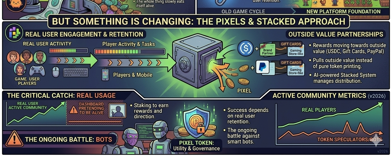 Lets see if it actually holds up this time. If Stacked works and real users keep coming back Pixels could show a better way for P2E projects. If not it might end up like the rest. For now its one of the more interesting ones in the space worth keeping an eye on.