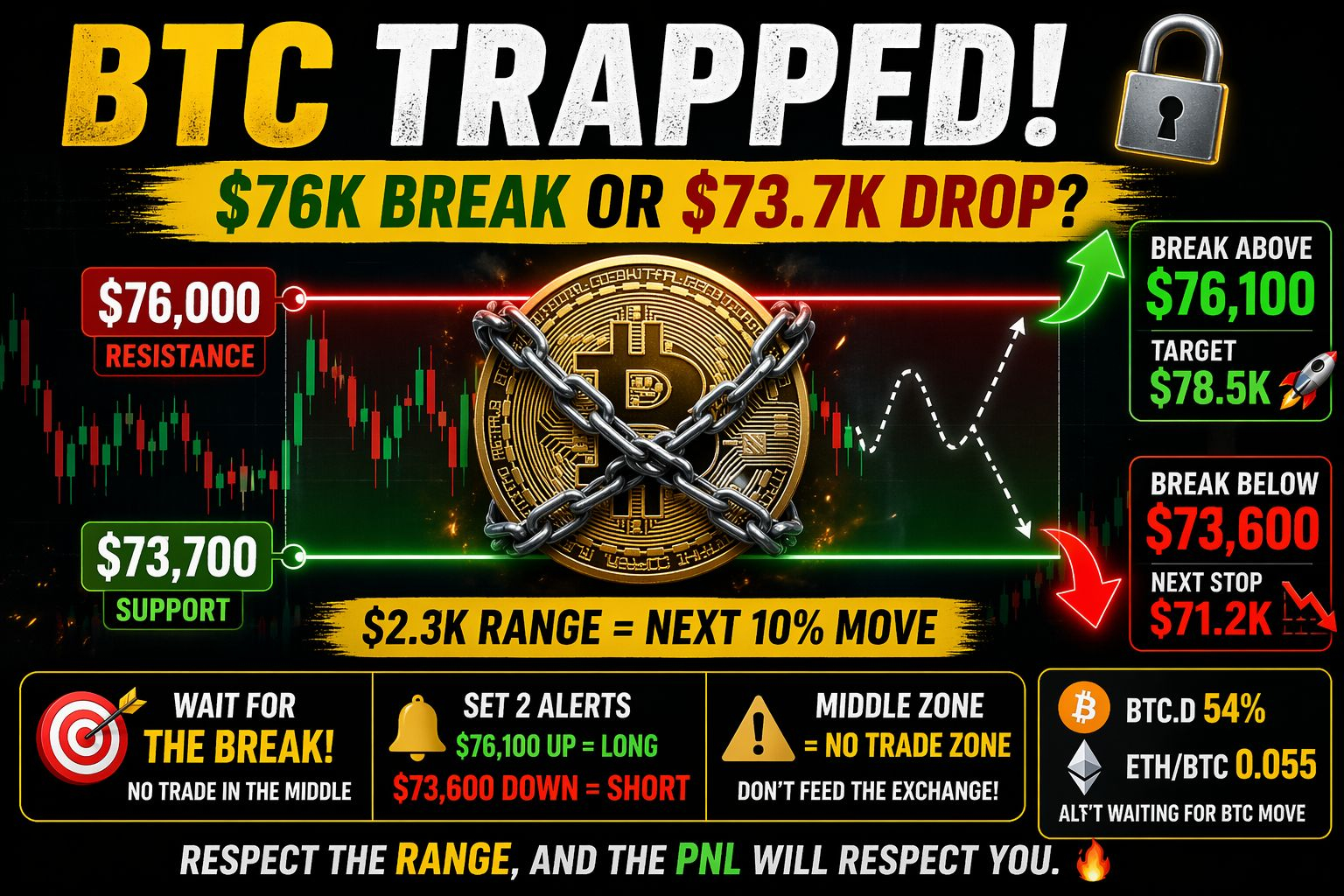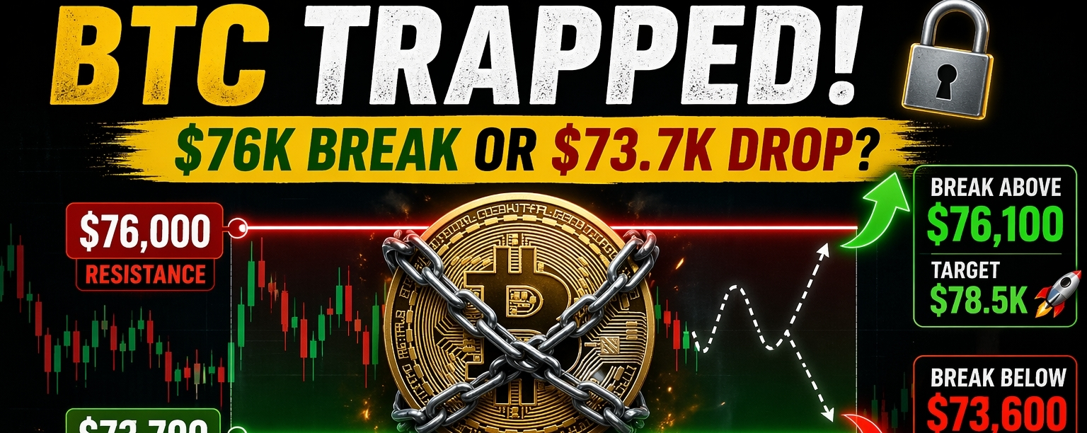BITCOIN RANGE LOCKED 🔒 | $76K Breakout or $73.7K Breakdown?