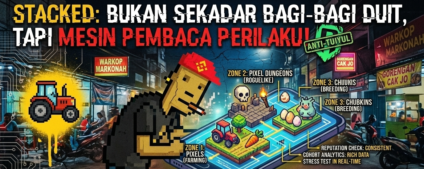 Gue liat banyak game Web3 ambruk pas gameplay-nya berubah dikit, karena ekonominya cuma kuat di atas kertas (whitepaper). Stacked sebaliknya. Semakin beda jenis gamenya, datanya makin kaya. Mereka lagi ngelakuin stress test raksasa untuk ngebuktiin kalau sistem mereka itu agnostic—nggak peduli apa gamenya, selama ada manusia yang main, polanya bisa dibaca.