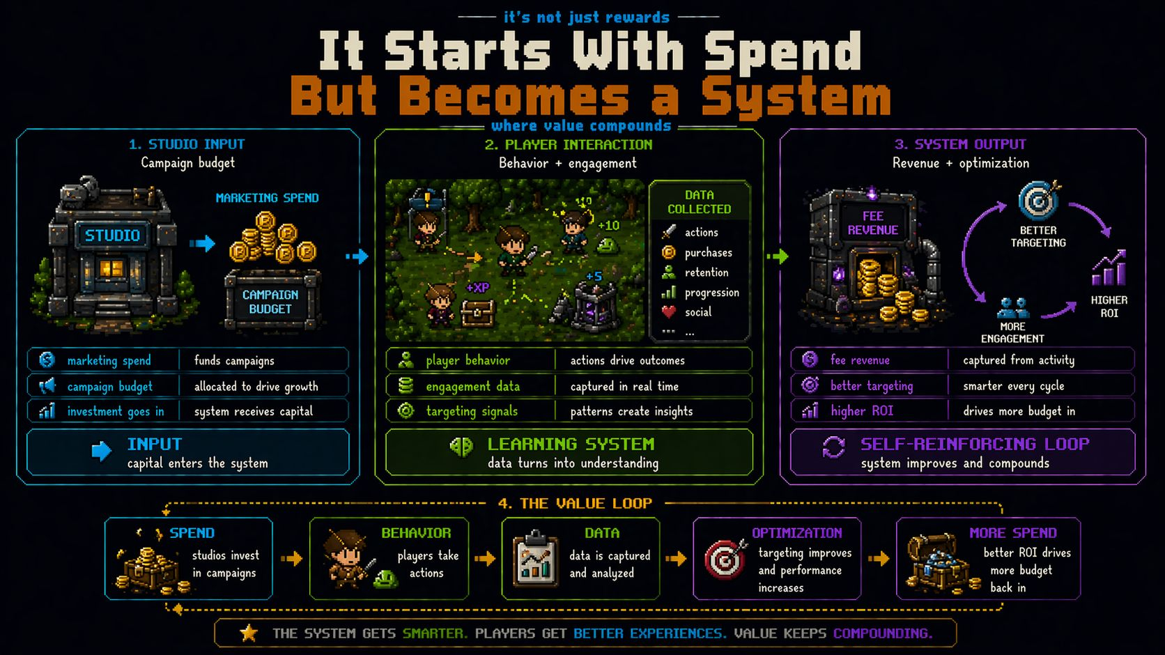 Because gaming studios already spend huge amounts on acquisition every year. And most of that process is still kind of a black box. They know how much they spend, but they don’t really know which users will stay, which ones will spend, or which ones will actually contribute to the ecosystem. So they keep buying traffic to replace churn.