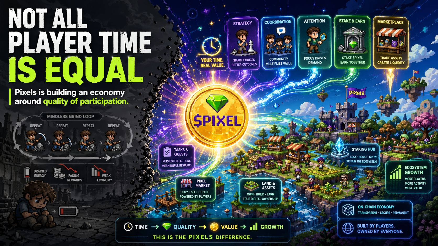 What I find most compelling about Pixels is that it quietly points to a bigger idea. The next stage of Web3 gaming may not be about making play profitable in the loudest possible way. It may be about building systems that understand player time more intelligently. Pixels seems to be moving in that direction. And if that continues, then what feels like a simple game today may end up being remembered as something more important: an early example of how digital worlds began turning time into a structured economic force through $PIXEL.