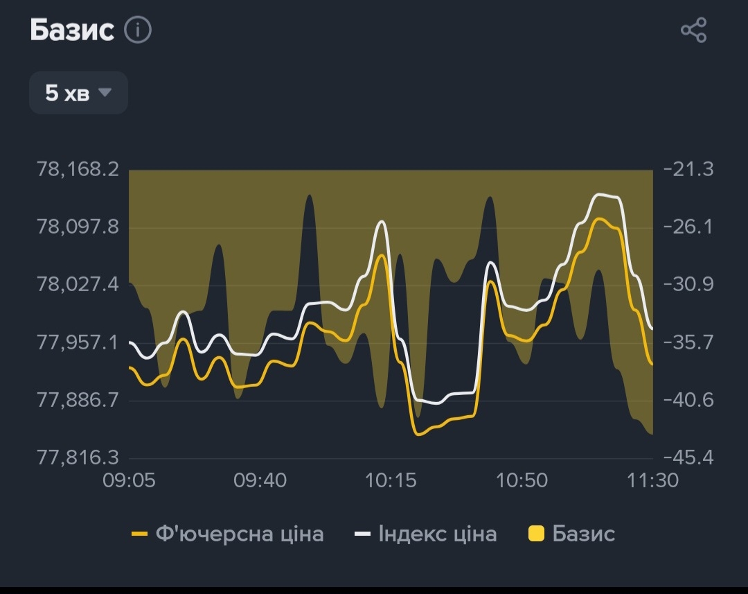Коли ви бачите Базис у мінусі (як на моєму скрині), це означає, що ринок перебуває в стані аномального страху.