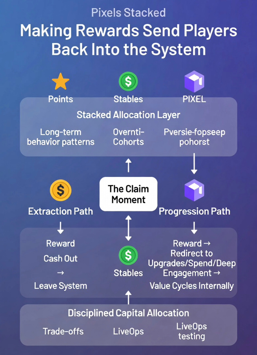 Points can guide behavior without immediate liquidity pressure. Stable rewards can provide predictable value when needed. And $PIXEL can move toward staking and deeper ecosystem participation instead of constant emission.