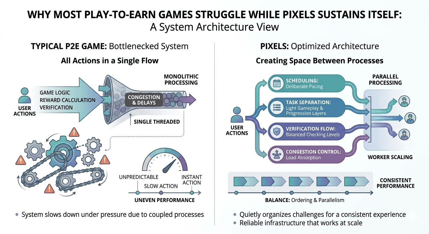 Over time, this changed how I look at Play to Earn systems. The ones that struggle often try to do everything in a single flow. The ones that last create space between processes, even if the user never notices it directly.