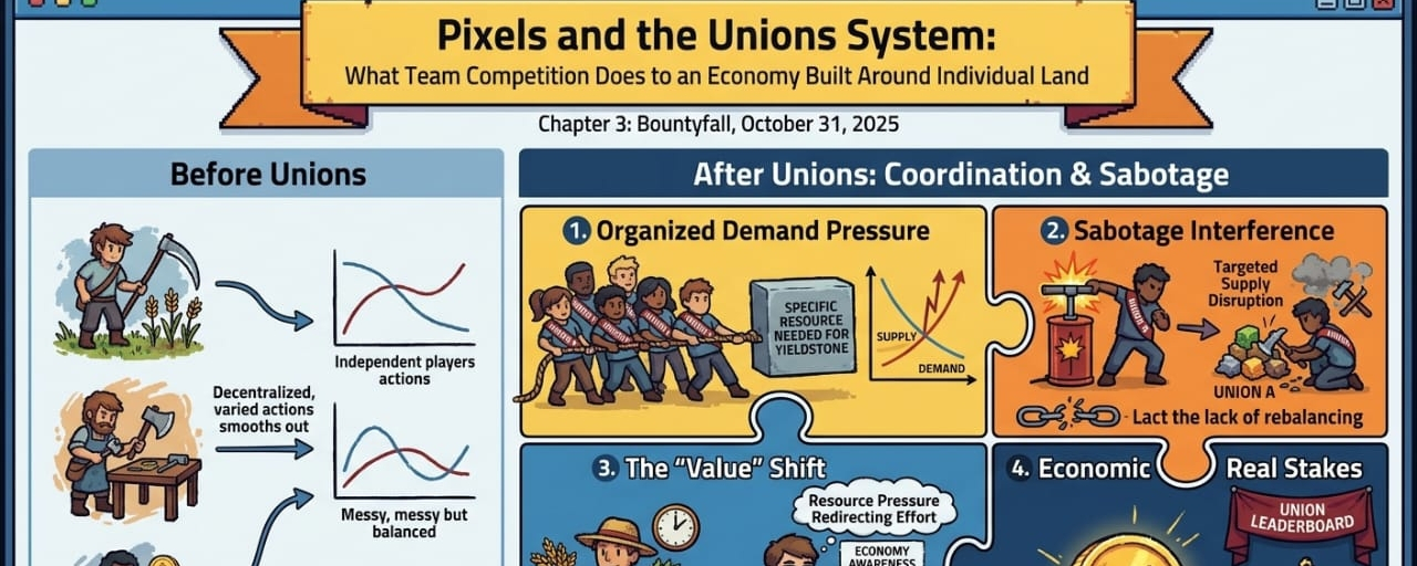 With Chapter 3 (Bountyfall, October 31, 2025), Unions, Yieldstones, and sabotage weren’t added as a side mode. They were dropped straight into the same system that everyone is already using to produce and trade.
