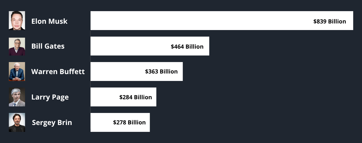 The planet's five richest people are worth nearly $1.8 trillion combined--in part because they have not given away much of their wealth.
