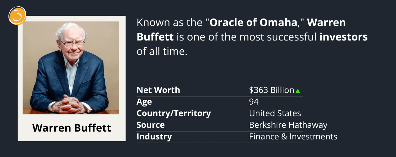 Musk, by the simple virtue of being so much richer than everyone else, still holds the No. 1 spot when measured by True Net Worth. But he loses serious ground to his more charitable contemporaries. Gates has given away an estimated 731 million shares of Microsoft. If he had instead held onto the stock, which has soared nearly sevenfold since the Gates Foundation launched in 2000, and if he kept all his cash donations for himself, he would be four times richer than he is today—and would rank as the world’s second-richest person, instead of No. 19. Buffett would similarly leap into the top five, from No. 9 to No. 3, if he never parted with any of his Berkshire Hathaway shares, which have risen by 700% since he started donating major blocks of them in 2006.