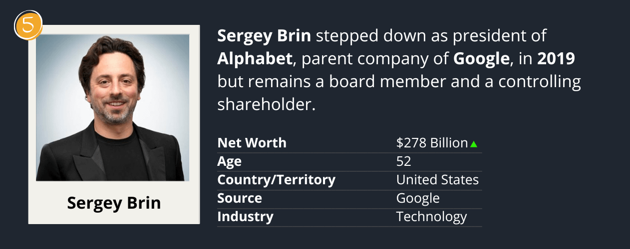 Brin has moved an estimated 131 million shares of Google parent-company Alphabet into charitable vehicles, including his Sergey Brin Foundation. Some $5 billion has already gone out the door, including more than $2 billion to support research into Parkinson’s disease, which his late mother had. He also gave $345 million to climate change nonprofits last year and is taking on autism in his latest effort to direct most of his giving to conditions affecting the central nervous system.