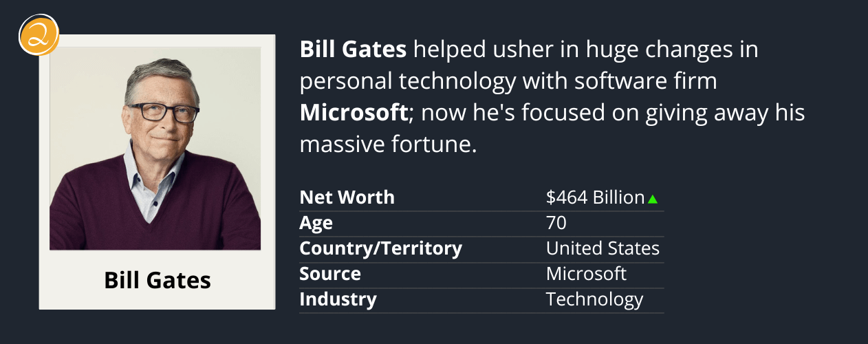 Gates and his billionaire ex-wife Melinda French Gates have poured $60 billion into the Gates Foundation since its founding in 2000, including Microsoft stock that would be worth an estimated $287 billion today. Counting those shares, and other cash gifts he has made, adds more wealth to his fortune than any other billionaire besides Musk has amassed, even in True Net Worth terms. Gates donated $12.5 billion to women’s empowerment groups set up by French Gates, after she resigned from their Gates Foundation in 2024. In May, he announced that the Gates Foundation will spend $200 billion and shut down by 2045. Bill and Melinda famously teamed up with Warren Buffett in 2010 to found the Giving Pledge, encouraging signers to publicly commit to donating the bulk of their fortunes to charity. In March, billionaire Peter Thiel told the New York Times he’s been counseling billionaires not to participate or to remove their names.