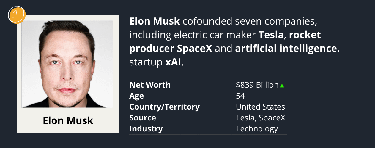 Elon Musk is the planet’s richest person by far, worth $839 billion as of Forbes’ annual World’s Billionaires list. He also ranks among the least philanthropic billionaires. Sure, Musk has transferred $8.5 billion of Tesla stock to his charitable foundations (1% of his net worth)—but nearly all of it is still sitting there idle. Only an estimated $500 million, or 0.06% of Musk’s vast fortune, has ever been disbursed to those in need.