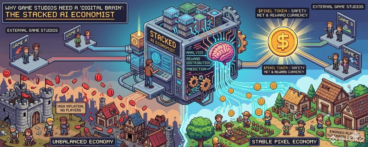 This is one of the hardest problems in Web3 gaming. That’s exactly why the @Pixels team built Stacked with an AI Game Economist inside it. This AI isn’t just for show, it acts like the brain that decides when and who should get rewards so the economy stays balanced.