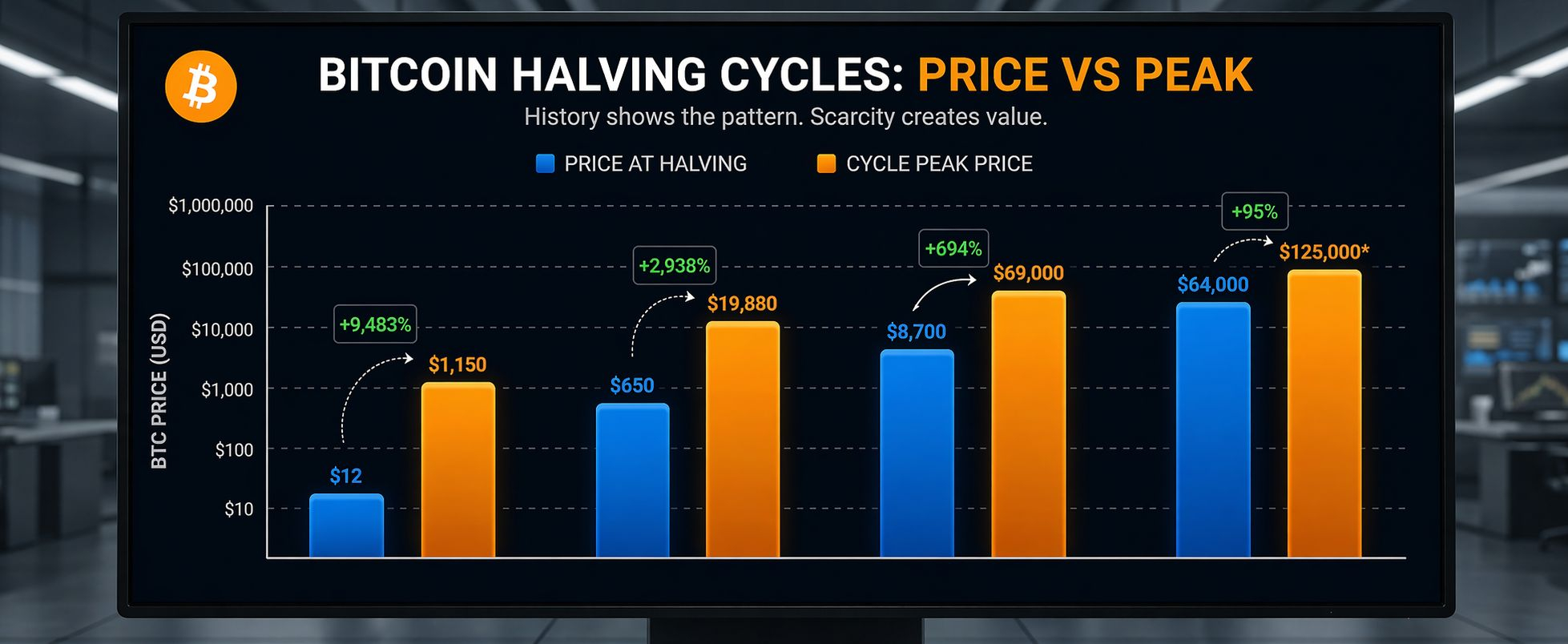 Supply Scarcity: Each halving tightens the tap.