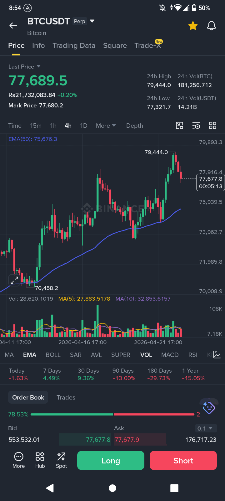 ➜ BTC faced rejection near $79.4K, forming a short-term resistance ceiling.
